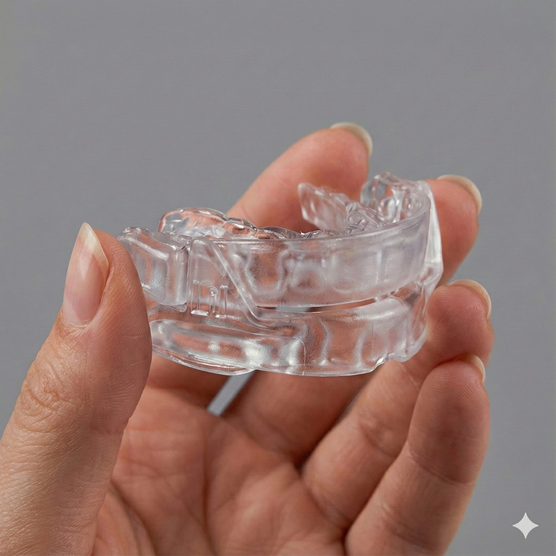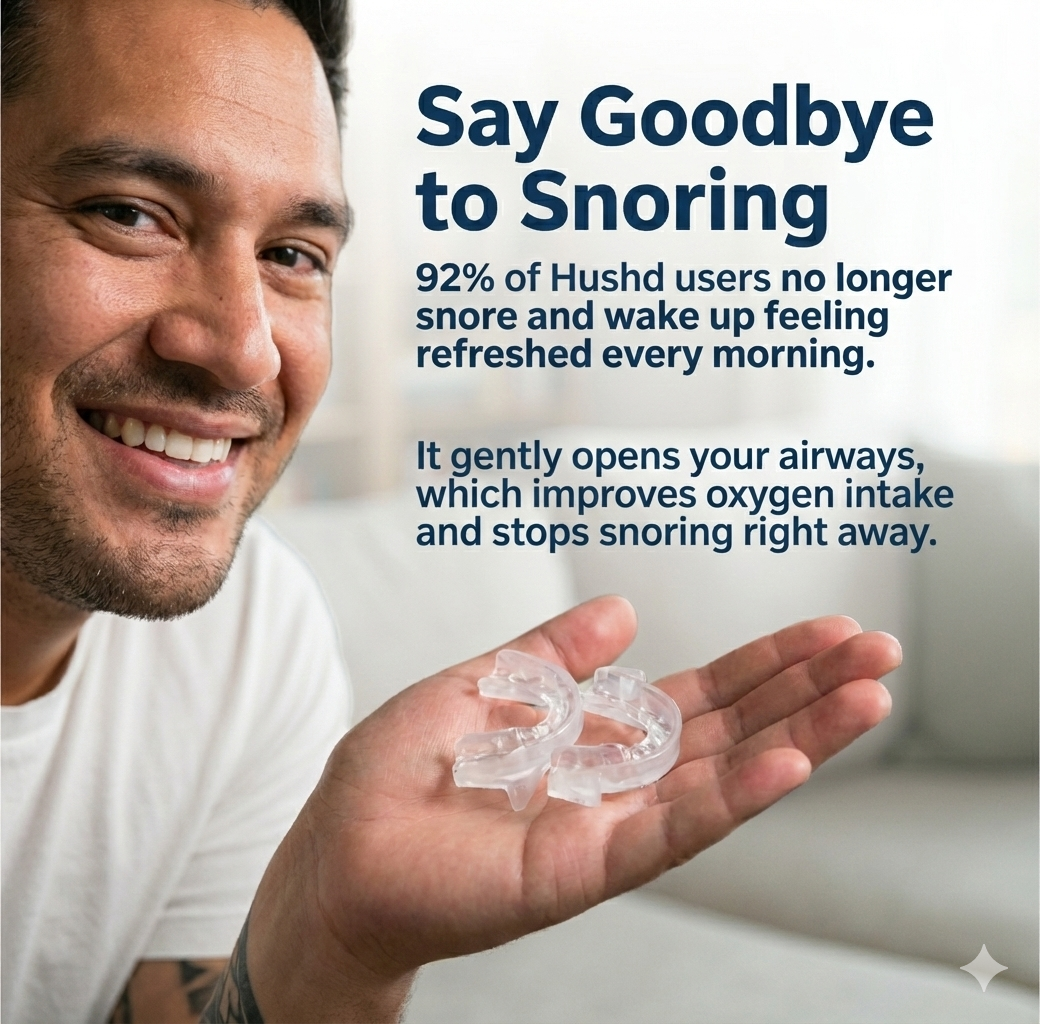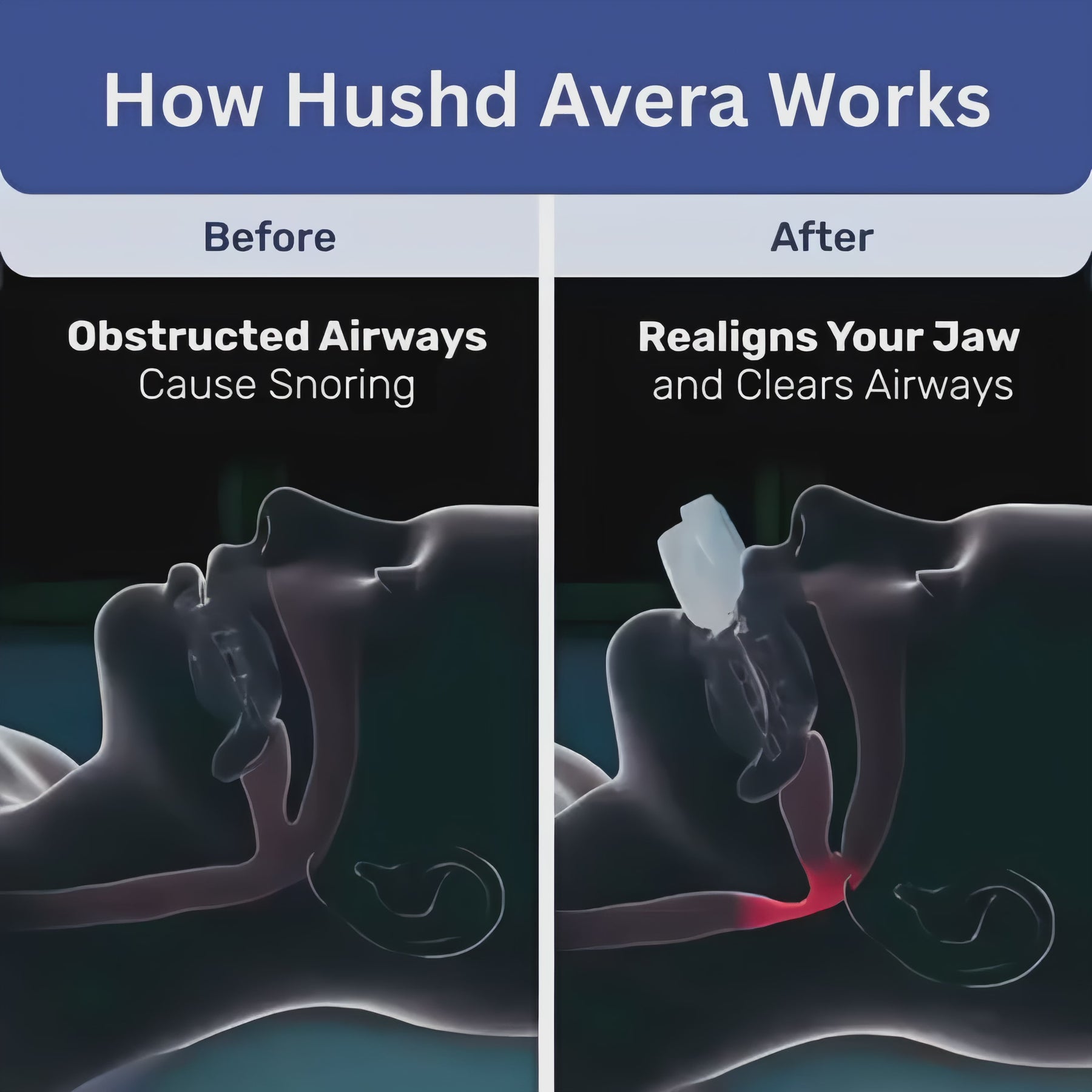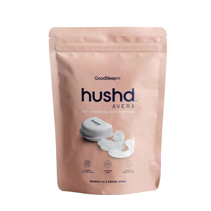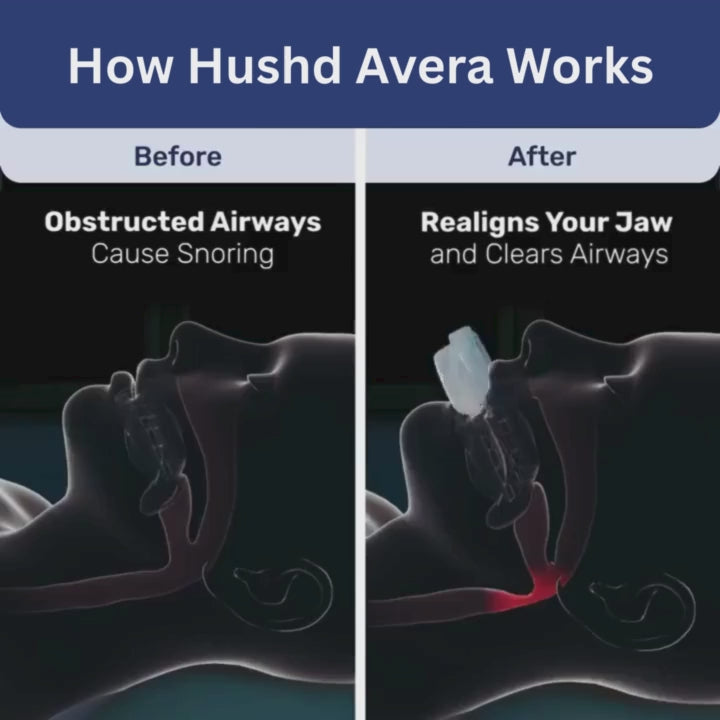 Hushd Avera is a compact, medical-grade mouthpiece that provides instant relief. It works by gently moving your lower jaw forward to keep your airway open all night.